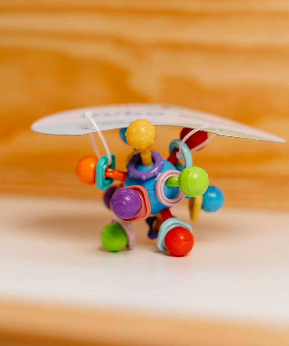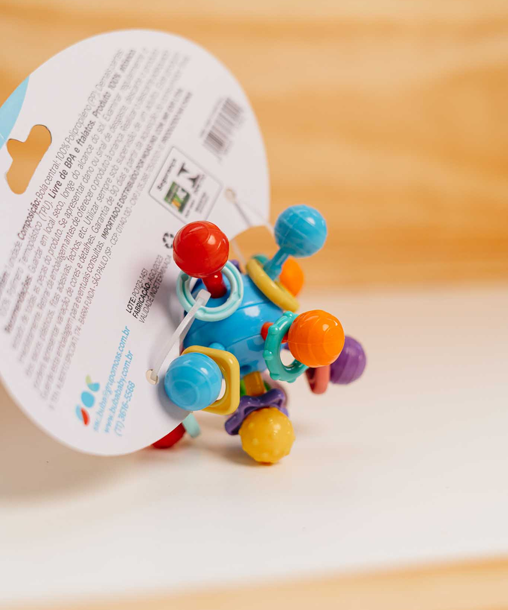 Além de gostosa para brincar, a Atomic Ball da Buba é flexível para morder e possui rotação 360°. Com cores vibrantes, formas e texturas para explorar, e perfeita para entreter e desenvolver os sentidos do bebê.