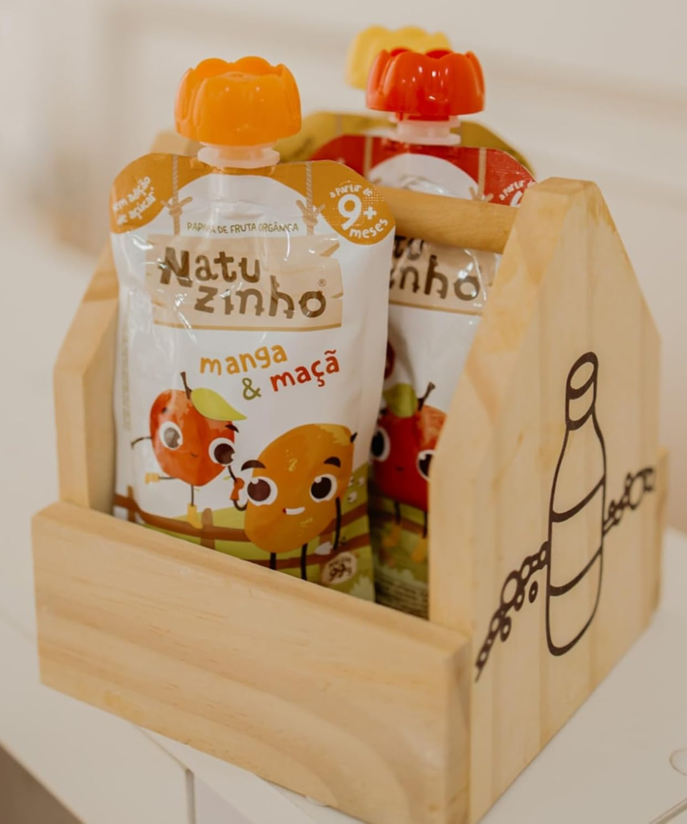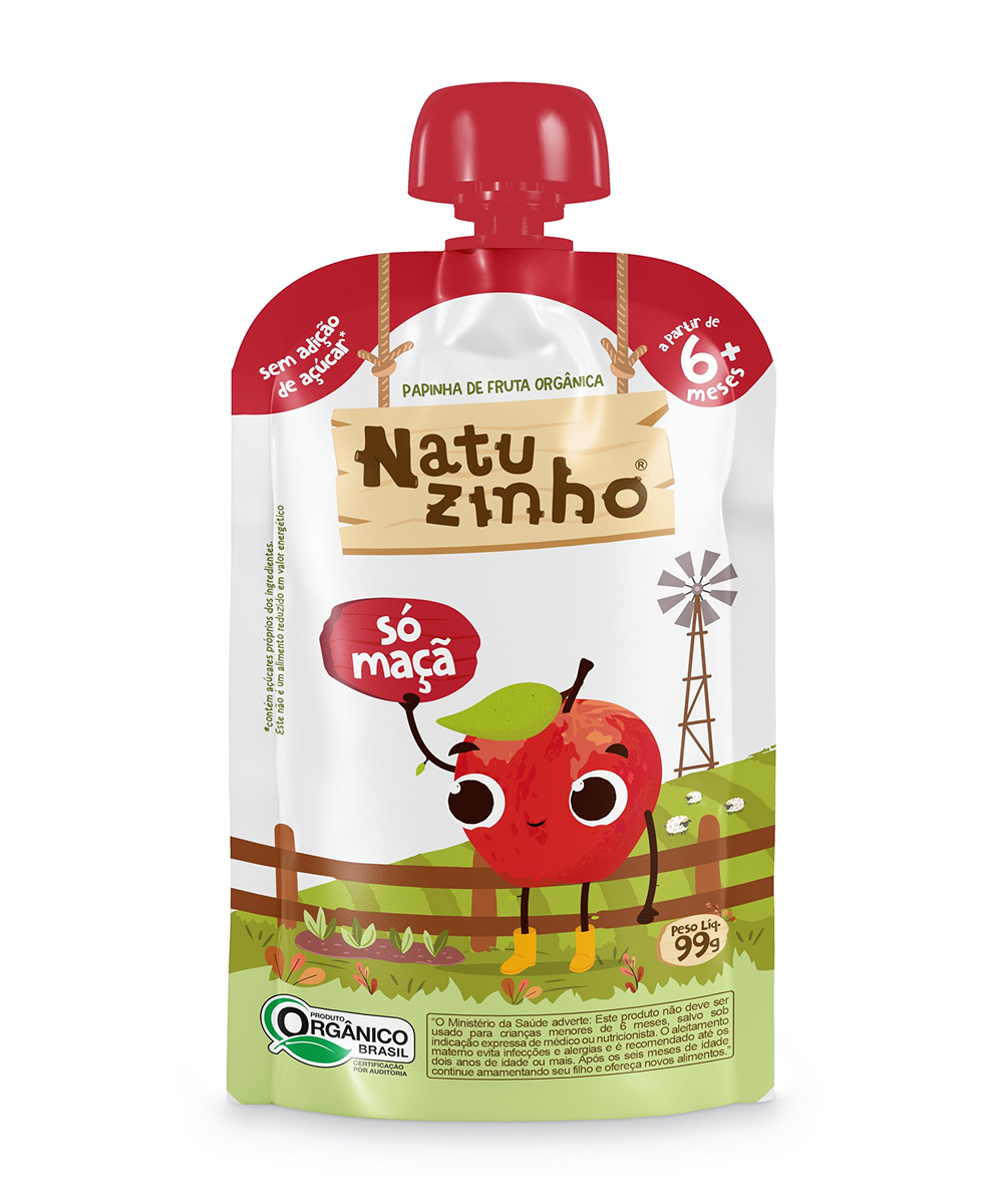 Ingredientes – Maçã: Purê de Maçã Orgânico, Suco de Maçã Orgânico Concentrado e Suco de Limão Orgânico Concentrado (uma gota, pra regular a acidez).