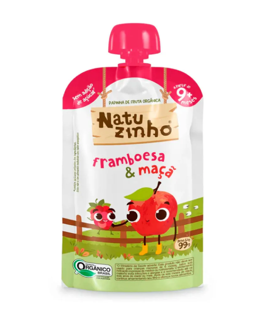 Ingredientes – Framboesa e Maçã: Purê de Maçã Orgânico, Purê de Framboesa Orgânico, Suco de Maçã Orgânico Concentrado e Suco de Limão Orgânico Concentrado (uma gota, pra regular a acidez).